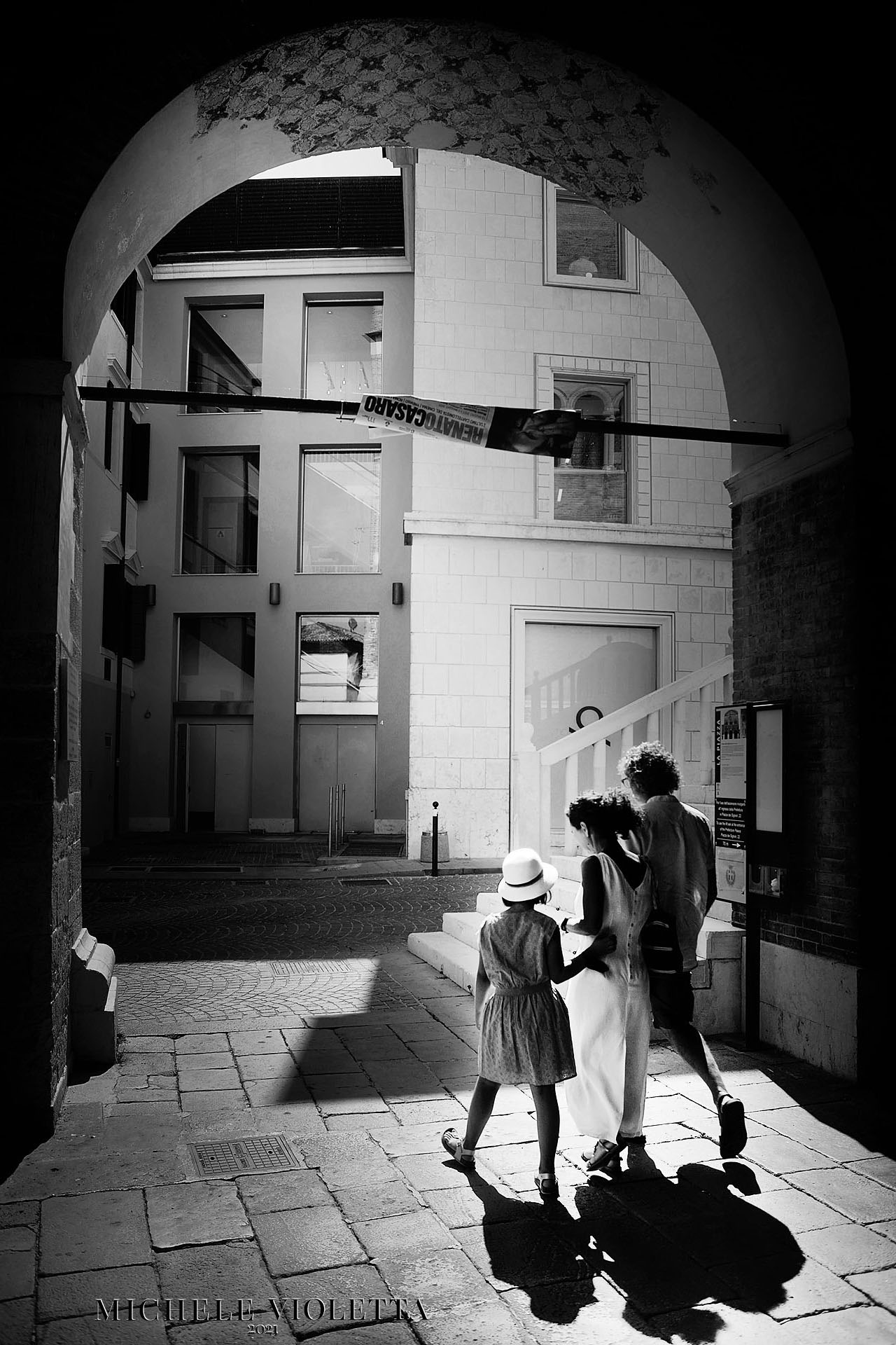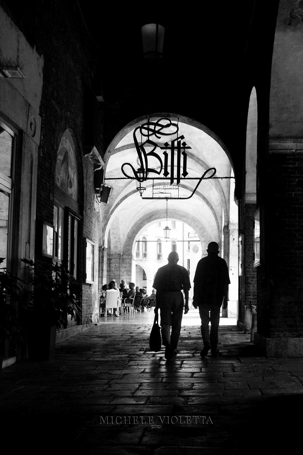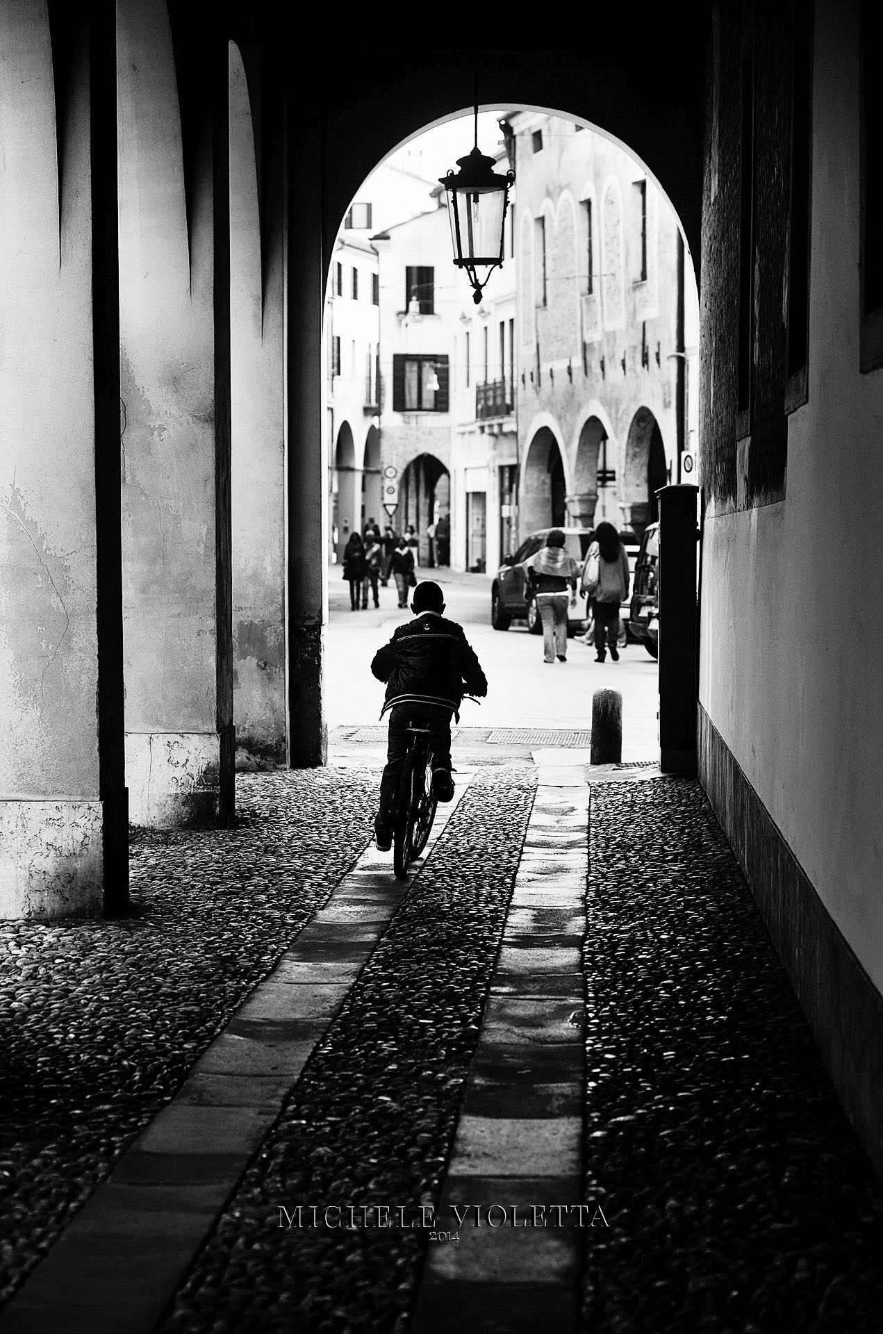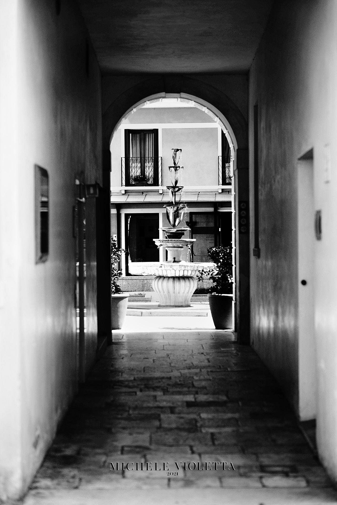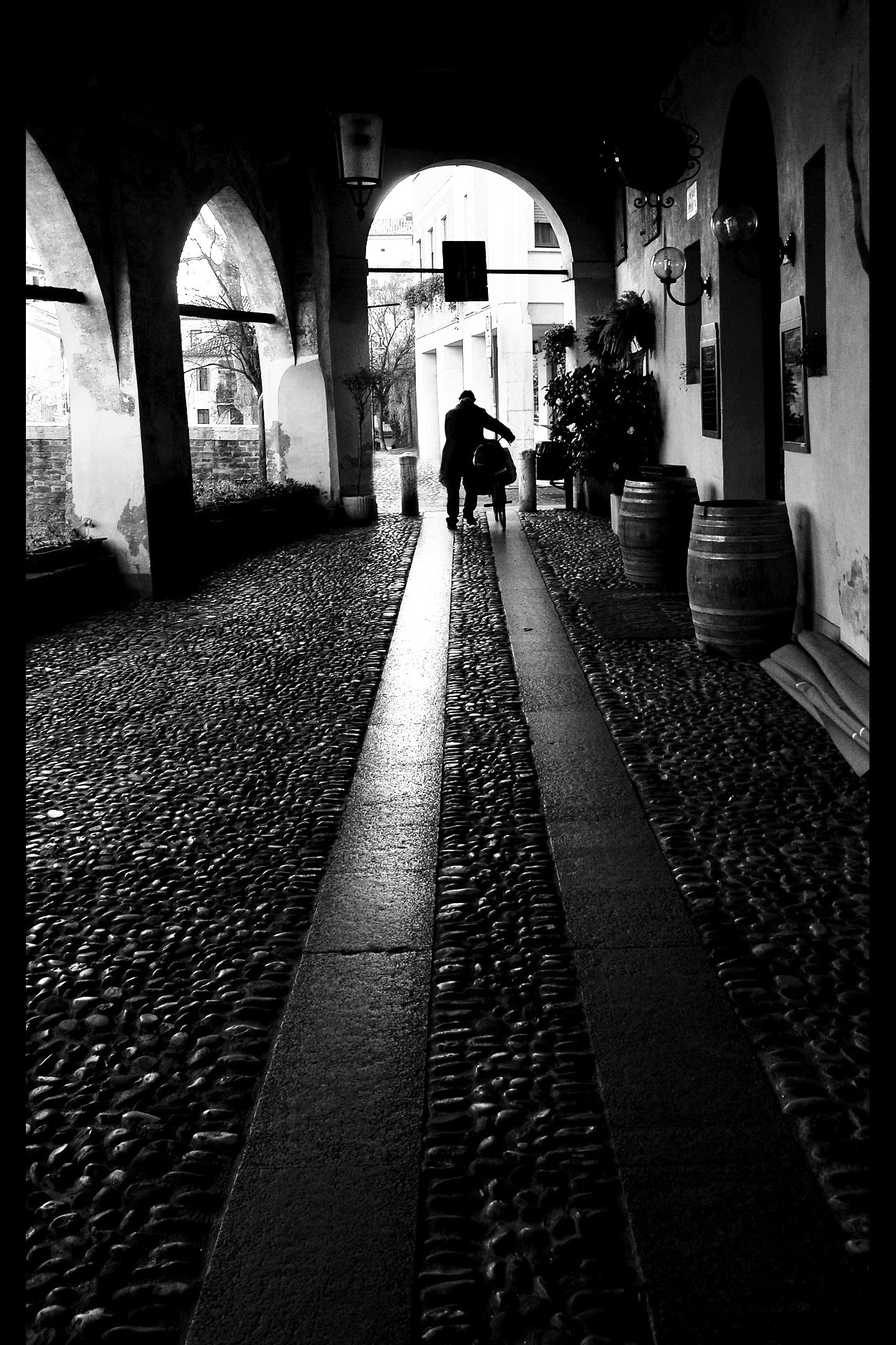 Linee di FugaSono le linee immaginarie o reali (come i bordi di un viale, un binario o, nel nostro caso, gli archi e le pareti del portico) che sembrano allontanarsi e convergere verso un unico punto nella profondità dell'immagine. Creano un forte senso di profondità e prospettiva.